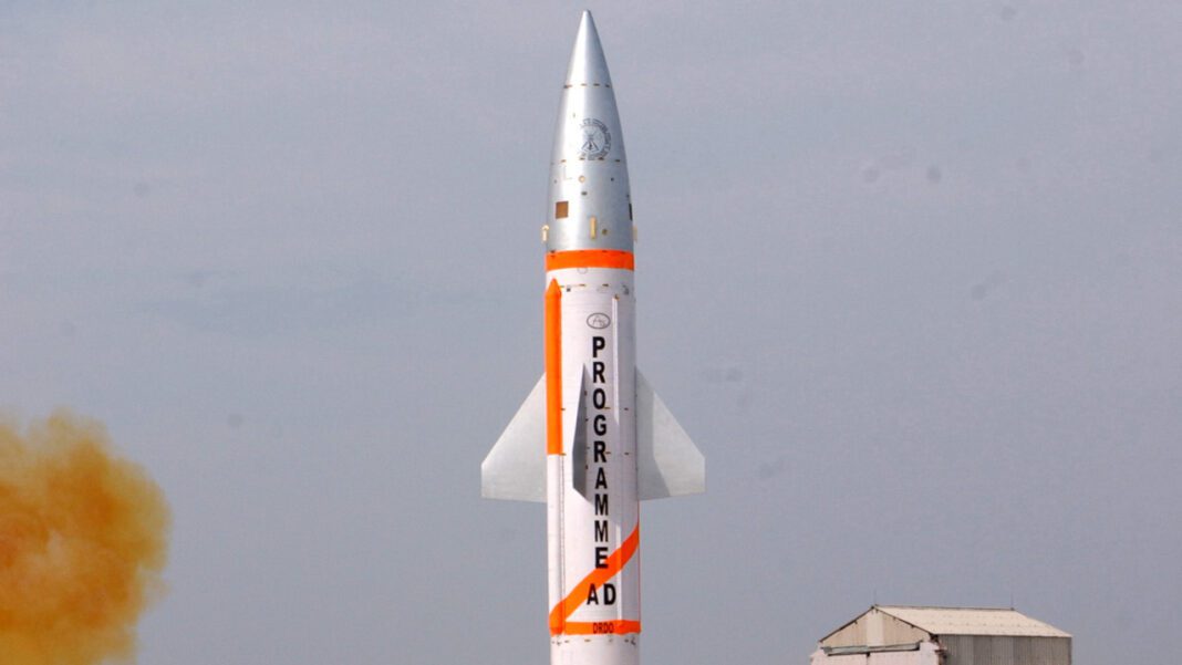 A modified Prithvi missile as the enemy target lifting off from the integrated test range at Chandipur-on-sea for the advanced air defence missile test on December 06, 2007.