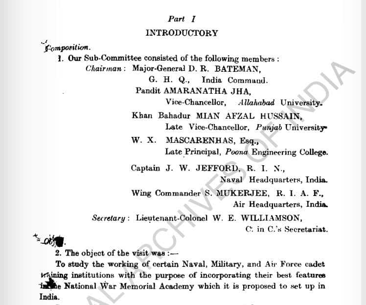 The Subcommittee included Vice-Chancellors from universities, the principal of a school, and members of all three services, including then-Wing Commander Subroto Mukerjee, who later became the Air Chief. They toured eleven military academies across the United States (US), the United Kingdom (UK), and Canada, studying in detail the training, syllabus, moral code of conduct, general orientation, and other aspects